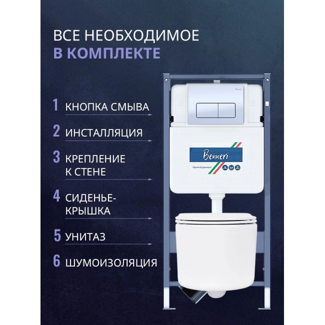 Комплект унитаз с инсталляцией, кнопкой и сиденьем микролифт Benneri B4.53.015A.AQ2004 купить с доставкой. 100% Оригинал. Гарантия!