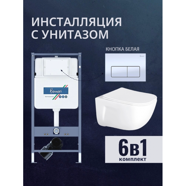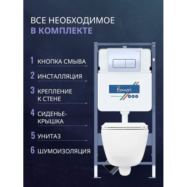 Комплект унитаз с инсталляцией, кнопкой и сиденьем микролифт Benneri B4.53.015A.AQ2012 купить с доставкой. 100% Оригинал. Гарантия!