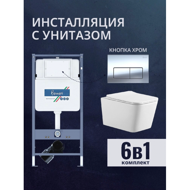 Комплект унитаз с инсталляцией, кнопкой и сиденьем микролифт Benneri B4.53.015B.AQ0530N купить с доставкой. 100% Оригинал. Гарантия!
