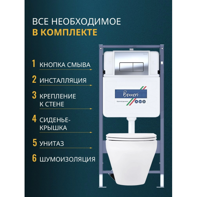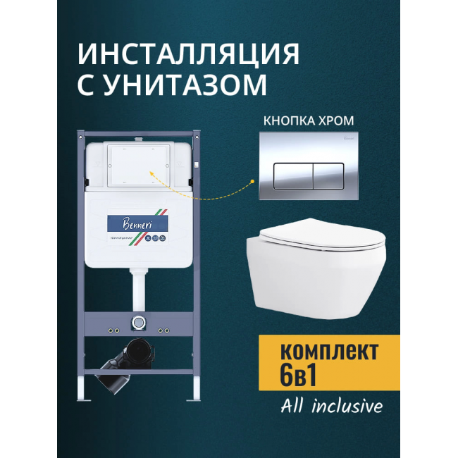 Комплект унитаз с инсталляцией, кнопкой и сиденьем микролифт Benneri B4.53.015B.AQ1199 купить с доставкой. 100% Оригинал. Гарантия!