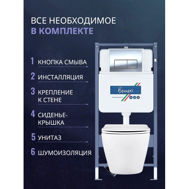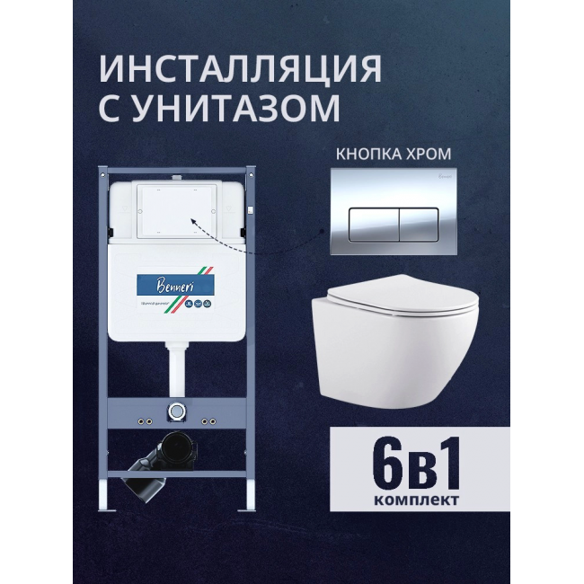 Комплект унитаз с инсталляцией, кнопкой и сиденьем микролифт Benneri B4.53.015B.AQ1901 купить с доставкой. 100% Оригинал. Гарантия!