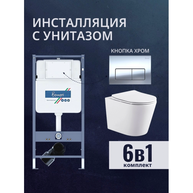 Комплект унитаз с инсталляцией, кнопкой и сиденьем микролифт Benneri B4.53.015B.AQ1904 купить с доставкой. 100% Оригинал. Гарантия!