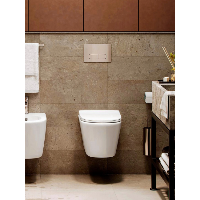 - Совместима со всеми видами подвесных унитазов, межосевое расстояние под крепежные шпильки унитаза 18 и 23 см