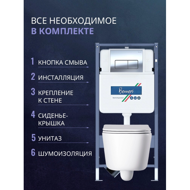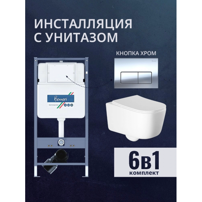 Комплект унитаз с инсталляцией, кнопкой и сиденьем микролифт Benneri B4.53.015B.AQ2002 купить с доставкой. 100% Оригинал. Гарантия!