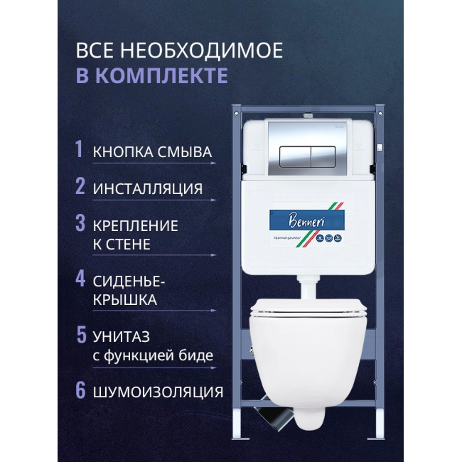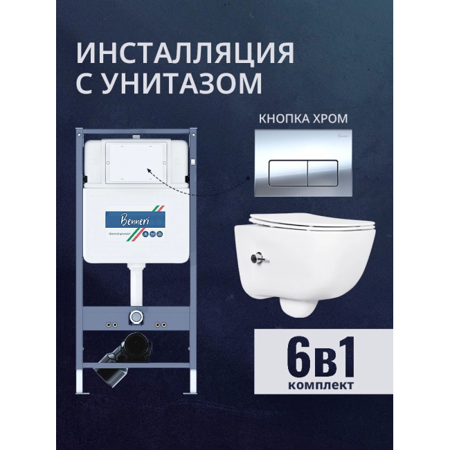 Комплект унитаз с инсталляцией, кнопкой и сиденьем микролифт Benneri B4.53.015B.AQ2012B купить с доставкой. 100% Оригинал. Гарантия!
