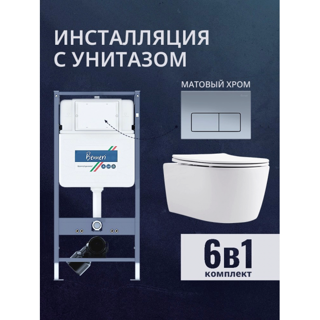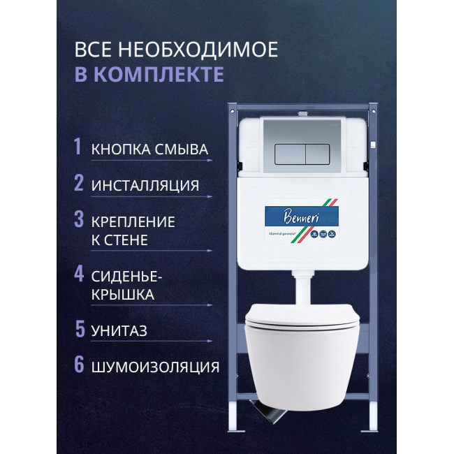 Комплект унитаз с инсталляцией, кнопкой и сиденьем микролифт Benneri B4.53.015C.AQ1106 купить с доставкой. 100% Оригинал. Гарантия!