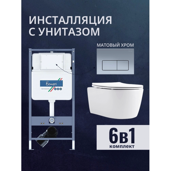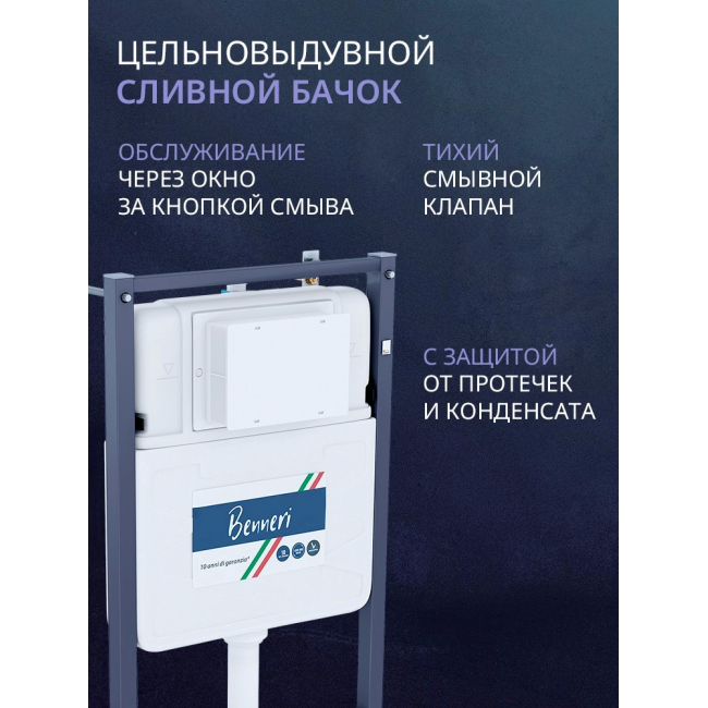 Комплект унитаз с инсталляцией, кнопкой и сиденьем микролифт Benneri B4.53.015C.AQ1106L купить с доставкой. 100% Оригинал. Гарантия!