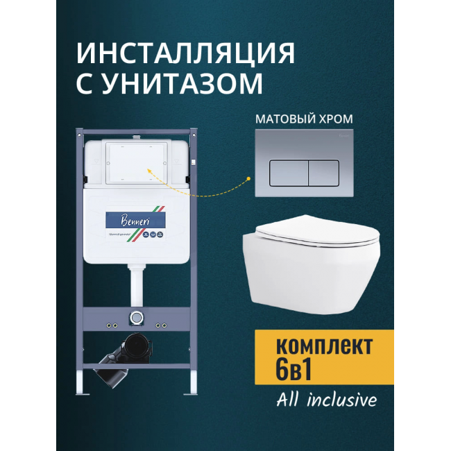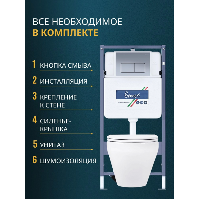 Комплект унитаз с инсталляцией, кнопкой и сиденьем микролифт Benneri B4.53.015C.AQ1199 купить с доставкой. 100% Оригинал. Гарантия!