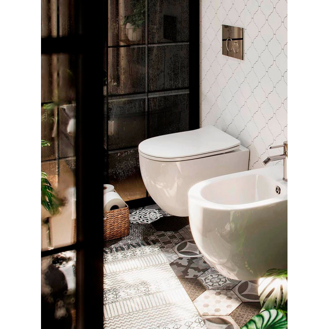 - Совместима со всеми видами подвесных унитазов, межосевое расстояние под крепежные шпильки унитаза 18 и 23 см