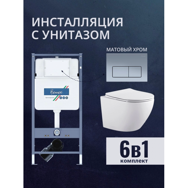 Комплект унитаз с инсталляцией, кнопкой и сиденьем микролифт Benneri B4.53.015C.AQ1901 купить с доставкой. 100% Оригинал. Гарантия!