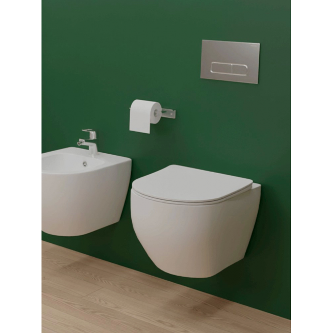 - Совместима со всеми видами подвесных унитазов, межосевое расстояние под крепежные шпильки унитаза 18 и 23 см