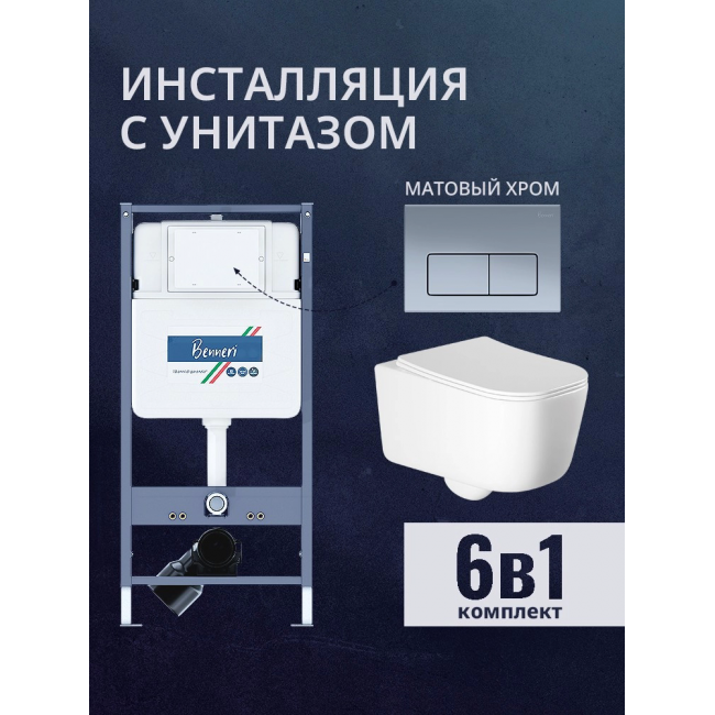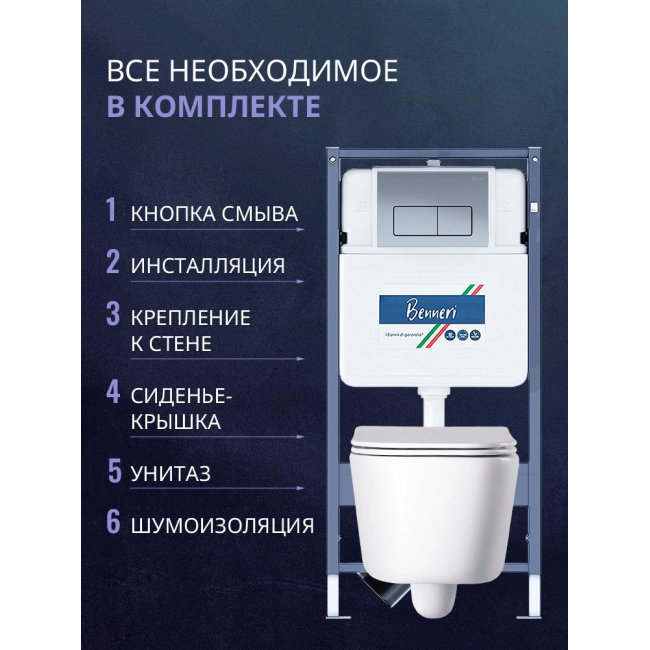 Комплект унитаз с инсталляцией, кнопкой и сиденьем микролифт Benneri B4.53.015C.AQ2002 купить с доставкой. 100% Оригинал. Гарантия!