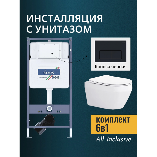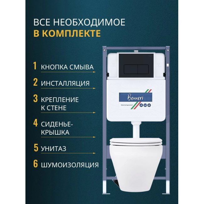 Комплект унитаз с инсталляцией, кнопкой и сиденьем микролифт Benneri B4.53.015D.AQ1199 купить с доставкой. 100% Оригинал. Гарантия!
