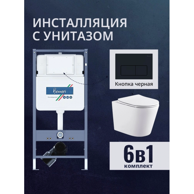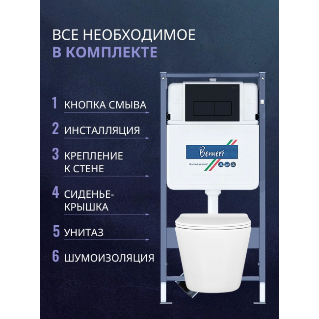 Комплект унитаз с инсталляцией, кнопкой и сиденьем микролифт Benneri B4.53.015D.AQ1904 купить с доставкой. 100% Оригинал. Гарантия!