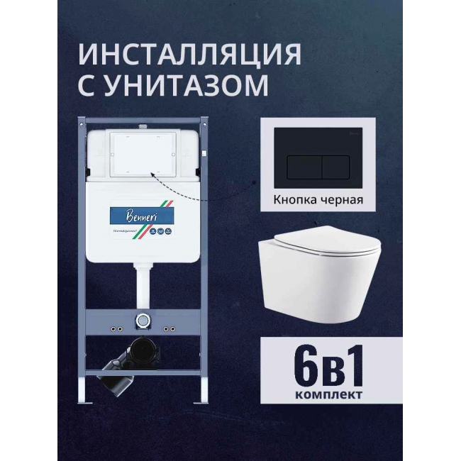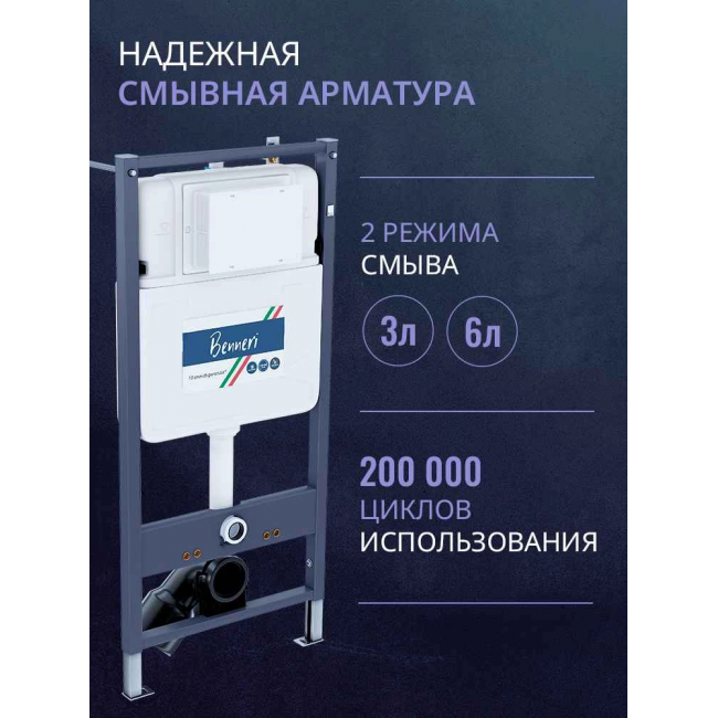 Комплект унитаз с инсталляцией, кнопкой и сиденьем микролифт Benneri B4.53.015D.AQ1905 купить с доставкой. 100% Оригинал. Гарантия!