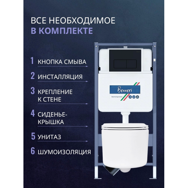 Комплект унитаз с инсталляцией, кнопкой и сиденьем микролифт Benneri B4.53.015D.AQ2004 купить с доставкой. 100% Оригинал. Гарантия!