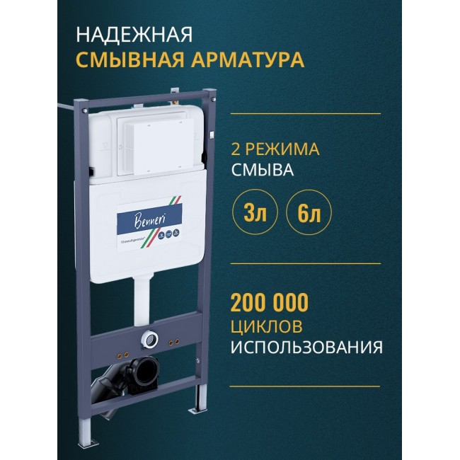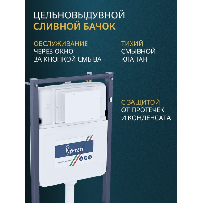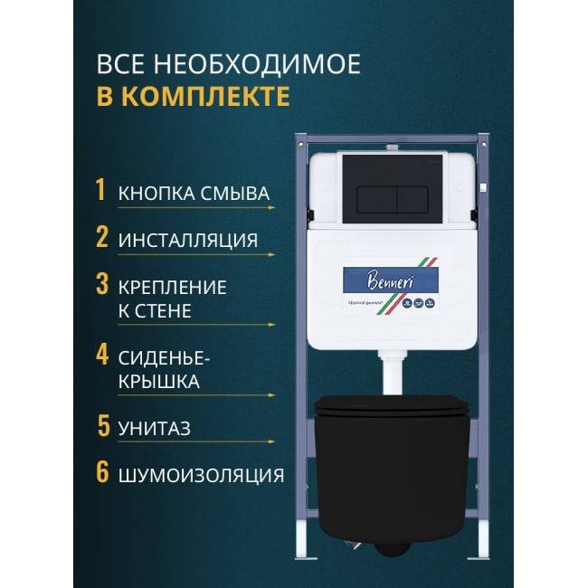 Комплект унитаз с инсталляцией, кнопкой и сиденьем микролифт Benneri B4.53.015D.AQ2004-MB купить с доставкой. 100% Оригинал. Гарантия!