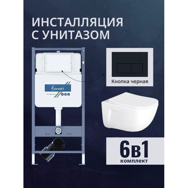 Комплект унитаз с инсталляцией, кнопкой и сиденьем микролифт Benneri B4.53.015D.AQ2012 купить с доставкой. 100% Оригинал. Гарантия!