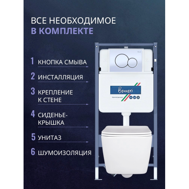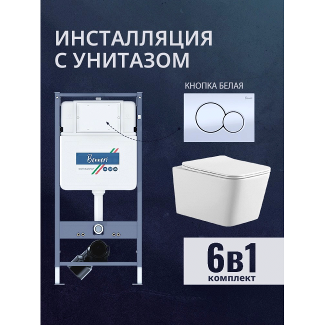 Комплект унитаз с инсталляцией, кнопкой и сиденьем микролифт Benneri B4.53.019A.AQ0530N купить с доставкой. 100% Оригинал. Гарантия!