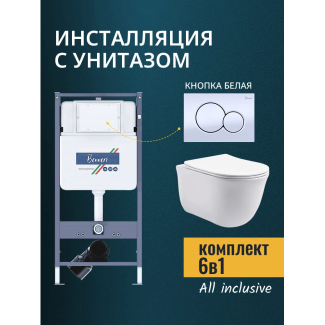 Комплект унитаз с инсталляцией, кнопкой и сиденьем микролифт Benneri B4.53.019A.AQ1111 купить с доставкой. 100% Оригинал. Гарантия!