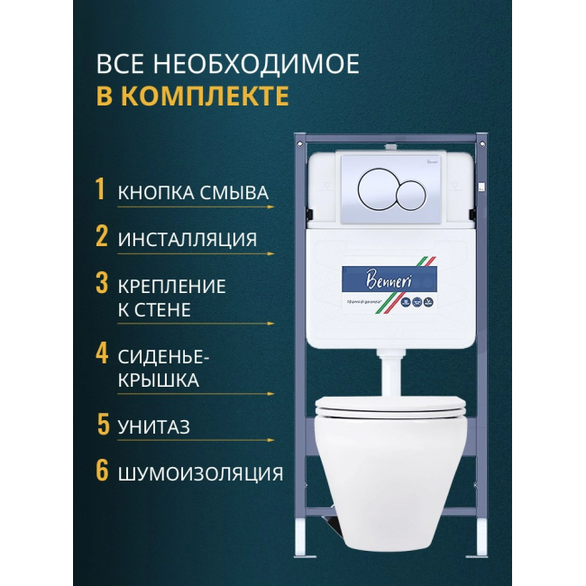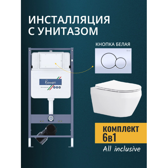 Комплект унитаз с инсталляцией, кнопкой и сиденьем микролифт Benneri B4.53.019A.AQ1199 купить с доставкой. 100% Оригинал. Гарантия!
