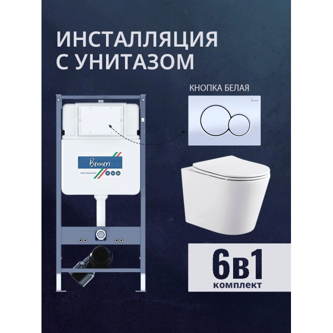 Комплект унитаз с инсталляцией, кнопкой и сиденьем микролифт Benneri B4.53.019A.AQ1904 купить с доставкой. 100% Оригинал. Гарантия!