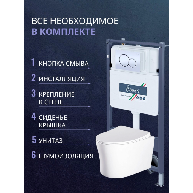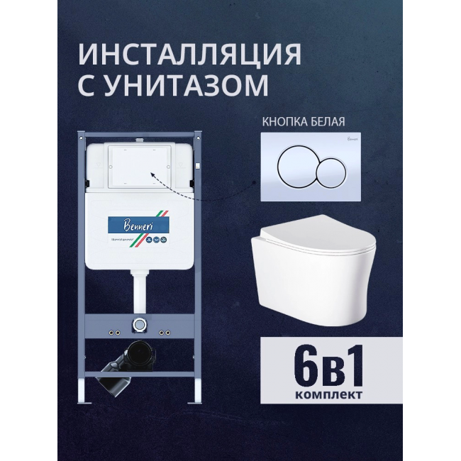 Комплект унитаз с инсталляцией, кнопкой и сиденьем микролифт Benneri B4.53.019A.AQ2009 купить с доставкой. 100% Оригинал. Гарантия!