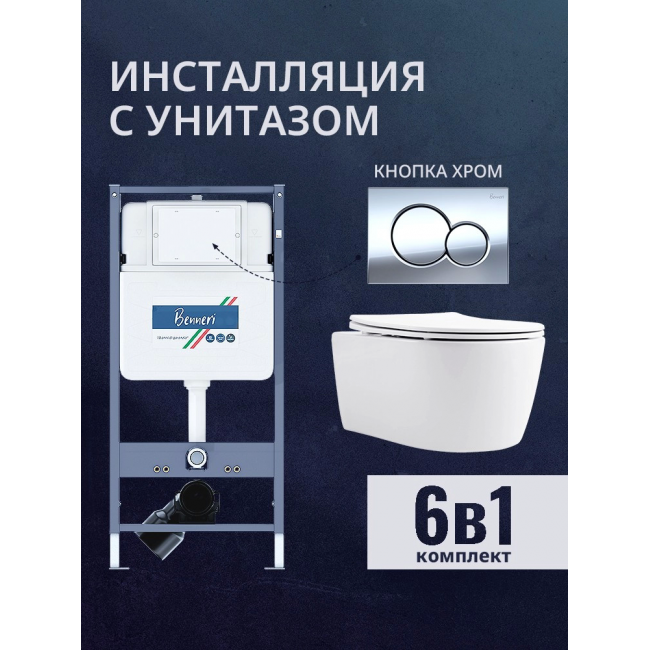 Комплект унитаз с инсталляцией, кнопкой и сиденьем микролифт Benneri B4.53.019B.AQ1106L купить с доставкой. 100% Оригинал. Гарантия!