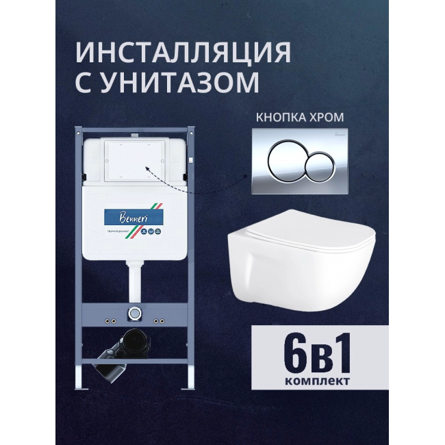 Комплект унитаз с инсталляцией, кнопкой и сиденьем микролифт Benneri B4.53.019B.AQ2012 купить с доставкой. 100% Оригинал. Гарантия!