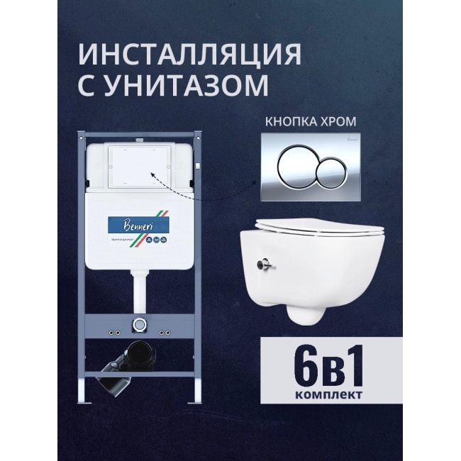 Комплект унитаз с инсталляцией, кнопкой и сиденьем микролифт Benneri B4.53.019B.AQ2012B купить с доставкой. 100% Оригинал. Гарантия!