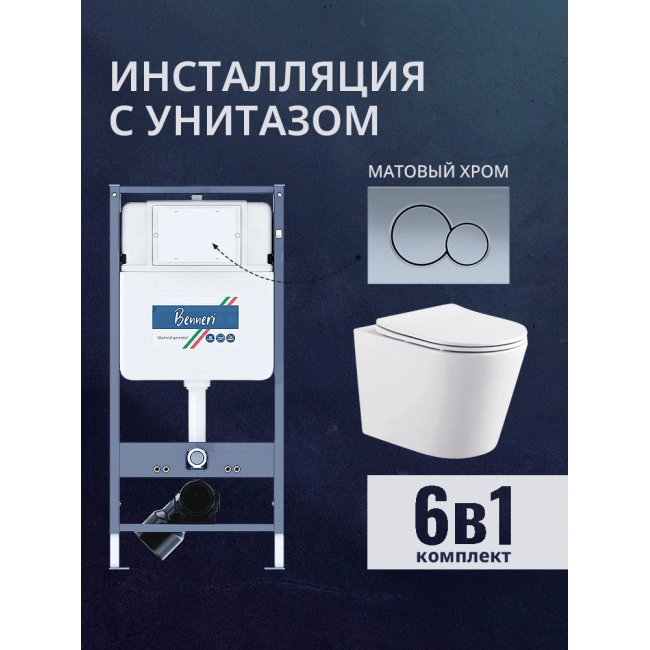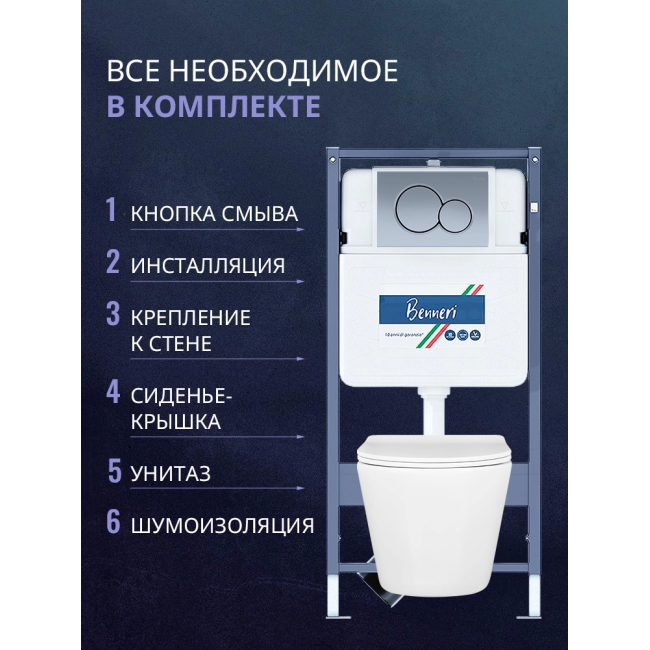 Комплект унитаз с инсталляцией, кнопкой и сиденьем микролифт Benneri B4.53.019C.AQ1904 купить с доставкой. 100% Оригинал. Гарантия!