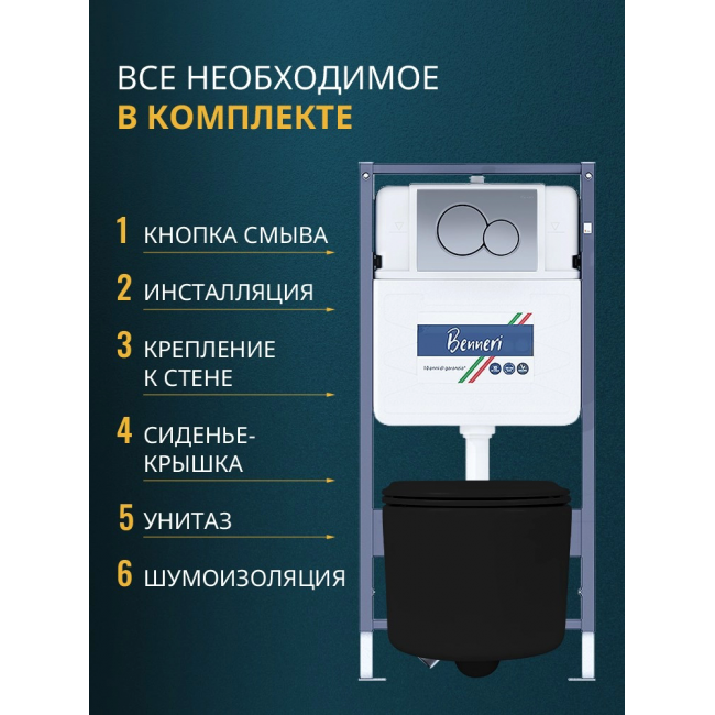 Комплект унитаз с инсталляцией, кнопкой и сиденьем микролифт Benneri B4.53.019C.AQ2004-MB купить с доставкой. 100% Оригинал. Гарантия!