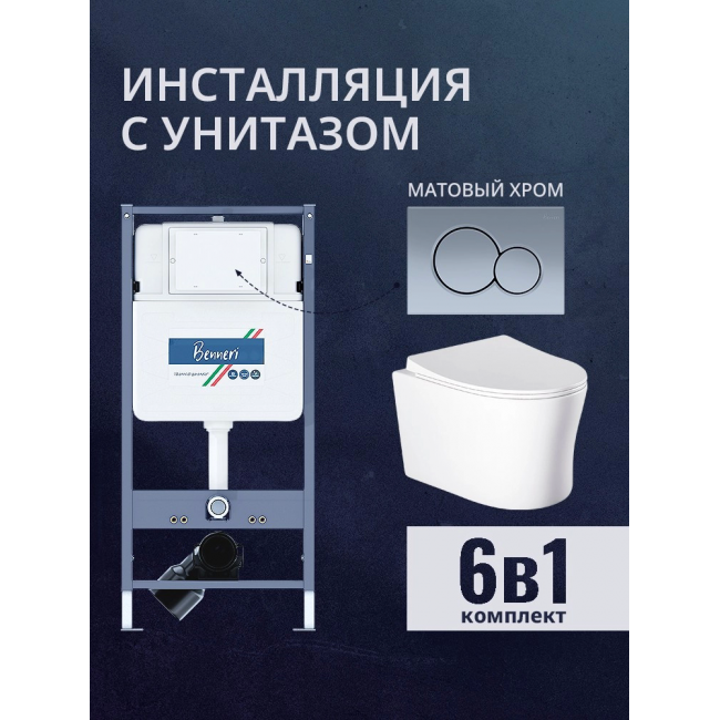 Комплект унитаз с инсталляцией, кнопкой и сиденьем микролифт Benneri B4.53.019C.AQ2009 купить с доставкой. 100% Оригинал. Гарантия!