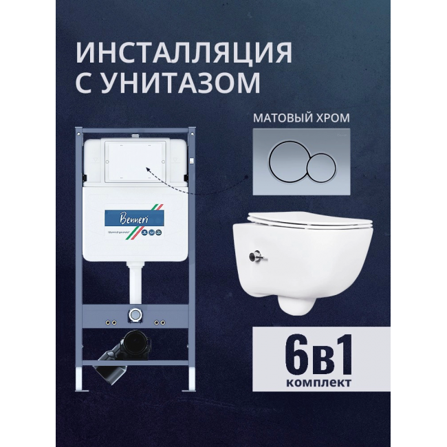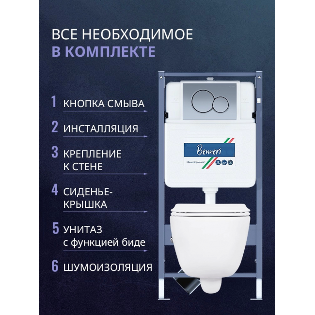 Комплект унитаз с инсталляцией, кнопкой и сиденьем микролифт Benneri B4.53.019C.AQ2012B купить с доставкой. 100% Оригинал. Гарантия!
