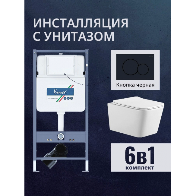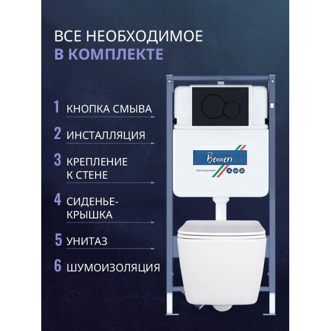 Комплект унитаз с инсталляцией, кнопкой и сиденьем микролифт Benneri B4.53.019D.AQ0530N купить с доставкой. 100% Оригинал. Гарантия!