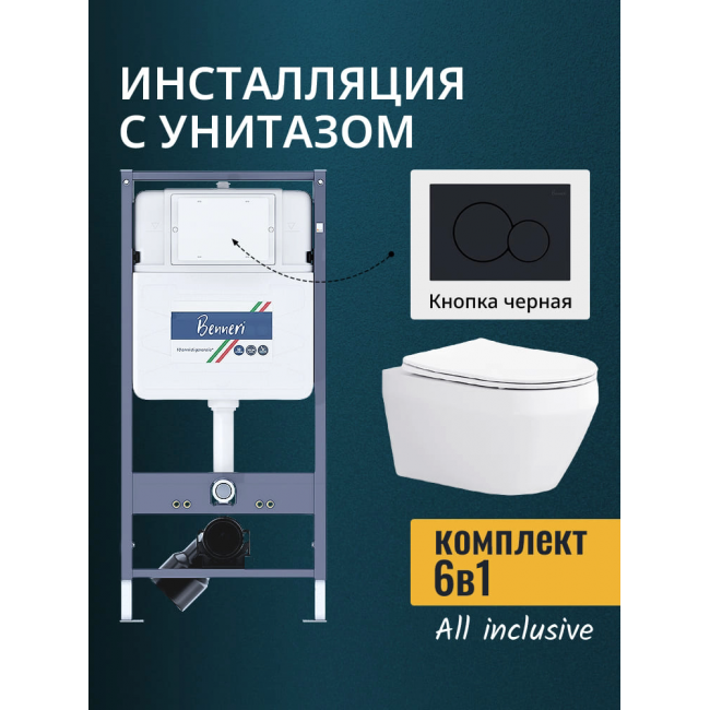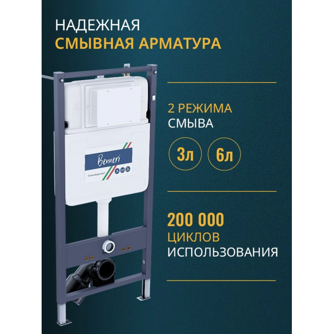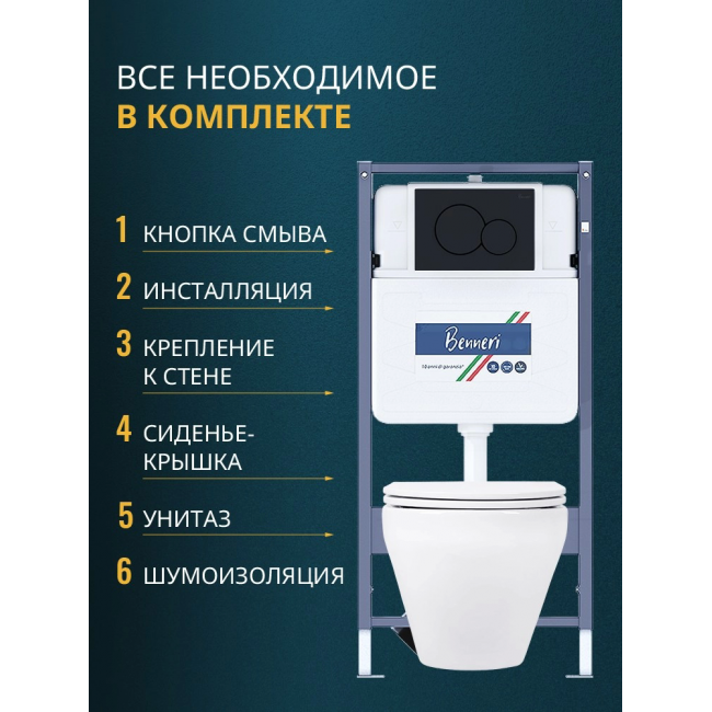 Комплект унитаз с инсталляцией, кнопкой и сиденьем микролифт Benneri B4.53.019D.AQ1199 купить с доставкой. 100% Оригинал. Гарантия!