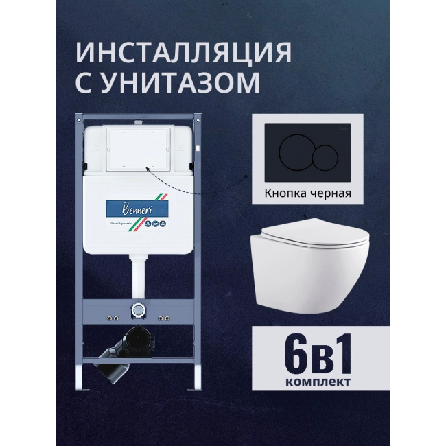 Комплект унитаз с инсталляцией, кнопкой и сиденьем микролифт Benneri B4.53.019D.AQ1901 купить с доставкой. 100% Оригинал. Гарантия!