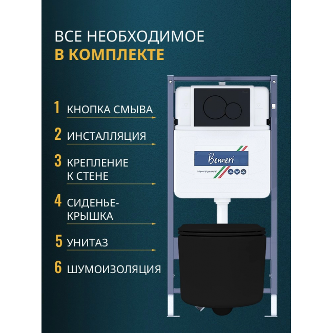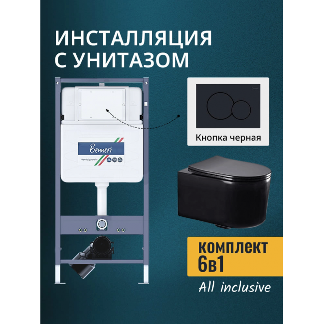 Комплект унитаз с инсталляцией, кнопкой и сиденьем микролифт Benneri B4.53.019D.AQ2004-MB купить с доставкой. 100% Оригинал. Гарантия!