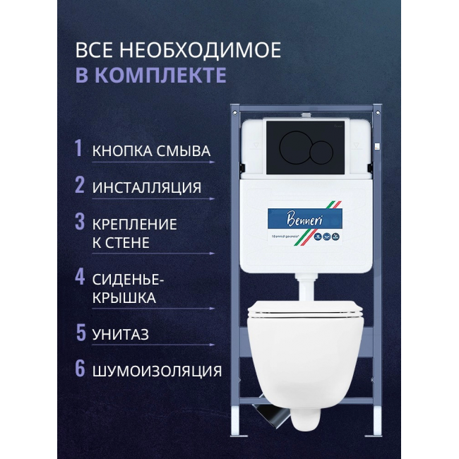 Комплект унитаз с инсталляцией, кнопкой и сиденьем микролифт Benneri B4.53.019D.AQ2012 купить с доставкой. 100% Оригинал. Гарантия!