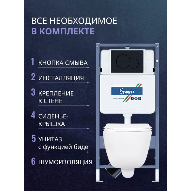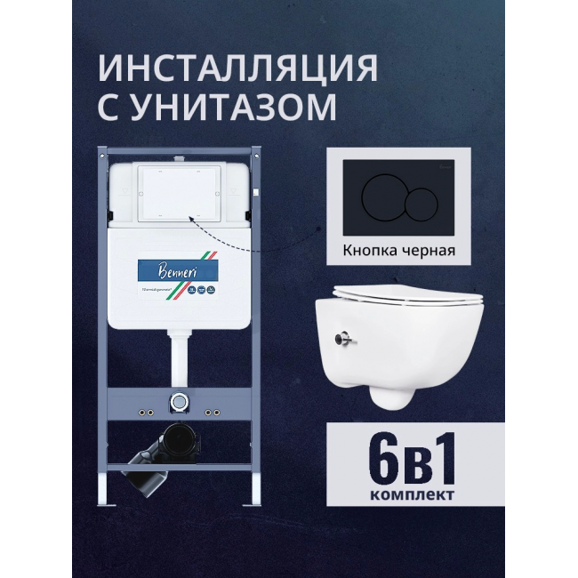 Комплект унитаз с инсталляцией, кнопкой и сиденьем микролифт Benneri B4.53.019D.AQ2012B купить с доставкой. 100% Оригинал. Гарантия!