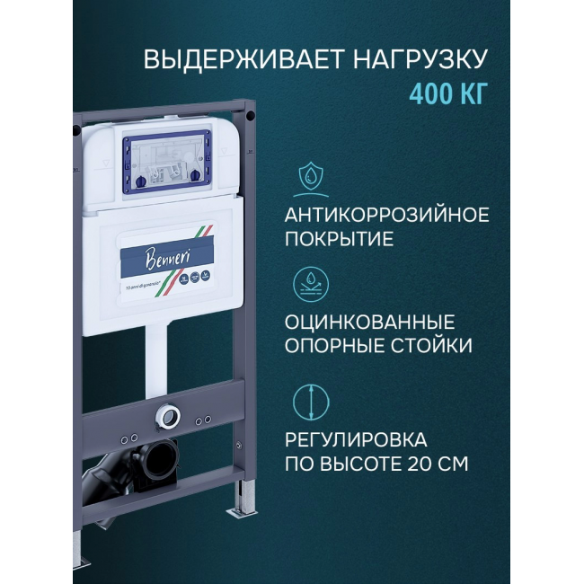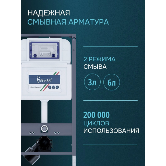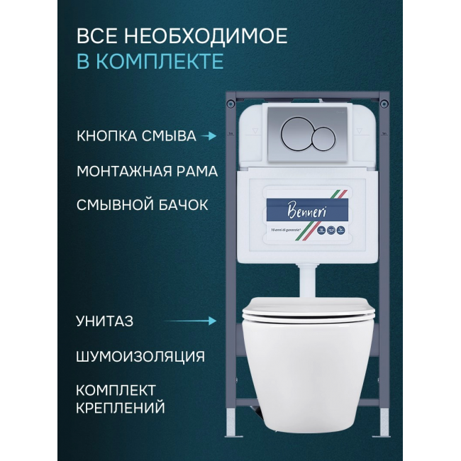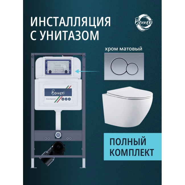 Комплект унитаз с инсталляцией, кнопкой и сиденьем микролифт Benneri Европа B4.54.019C.AQ1901 безободковый купить с доставкой. 100% Оригинал. Гарантия!