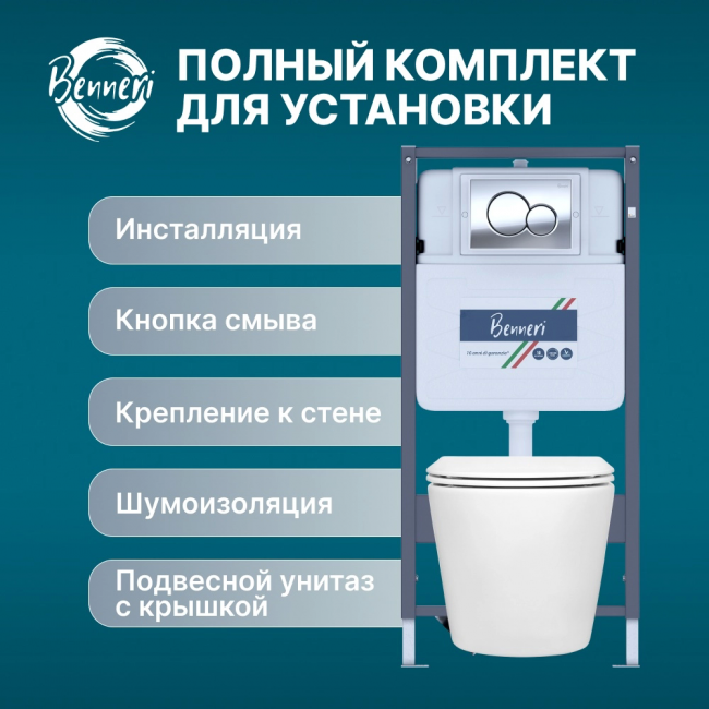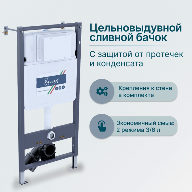 Комплект унитаз с инсталляцией, кнопкой и сиденьем микролифт Benneri Milano B4.53.019B.1178.2 безободковый купить с доставкой. 100% Оригинал. Гарантия!
