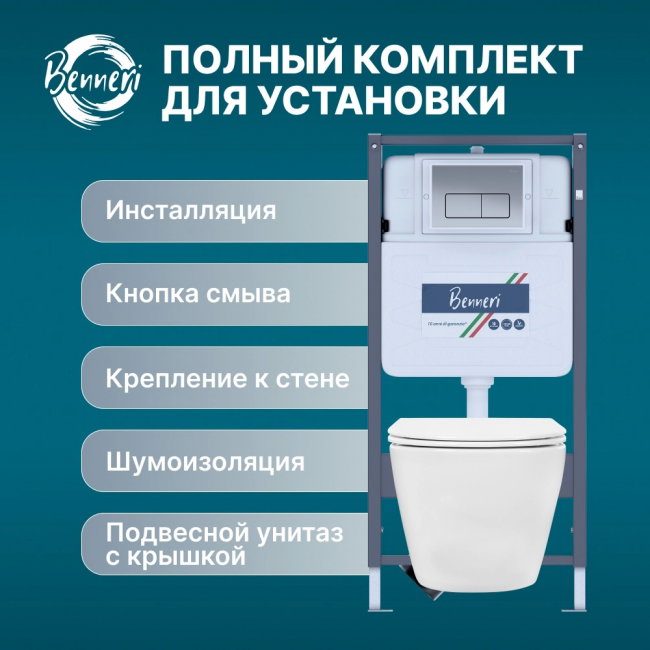 Комплект унитаз с инсталляцией, кнопкой и сиденьем микролифт Benneri Palermo B4.53.015C.1176.3 безободковый купить с доставкой. 100% Оригинал. Гарантия!