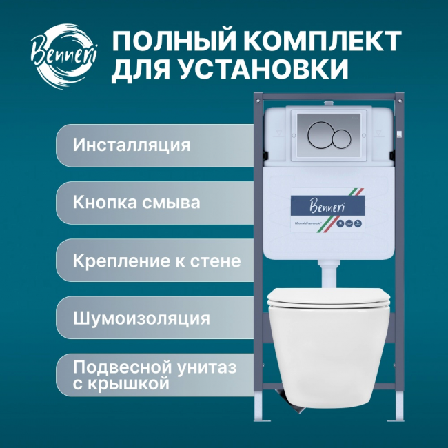 Комплект унитаз с инсталляцией, кнопкой и сиденьем микролифт Benneri Palermo B4.53.019C.1176.3 безободковый купить с доставкой. 100% Оригинал. Гарантия!