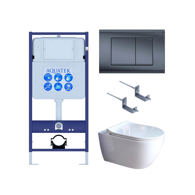 Комплект унитаз с инсталляцией, кнопкой и сиденьем микролифт SET AQUATEK ПОЛАРИС-01-033 4в1 безободковый купить с доставкой. 100% Оригинал. Гарантия!