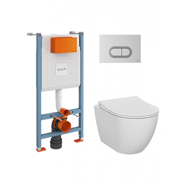 Комплект унитаз с инсталляцией, кнопкой и сиденьем микролифт VitrA Integra 9856B003-7200 безободковый купить с доставкой. 100% Оригинал. Гарантия!
