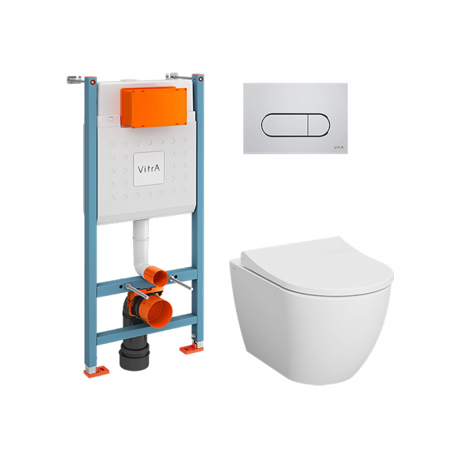 Комплект унитаз с инсталляцией, кнопкой и сиденьем микролифт VitrA Mia Round 9873B003-7201 купить с доставкой. 100% Оригинал. Гарантия!