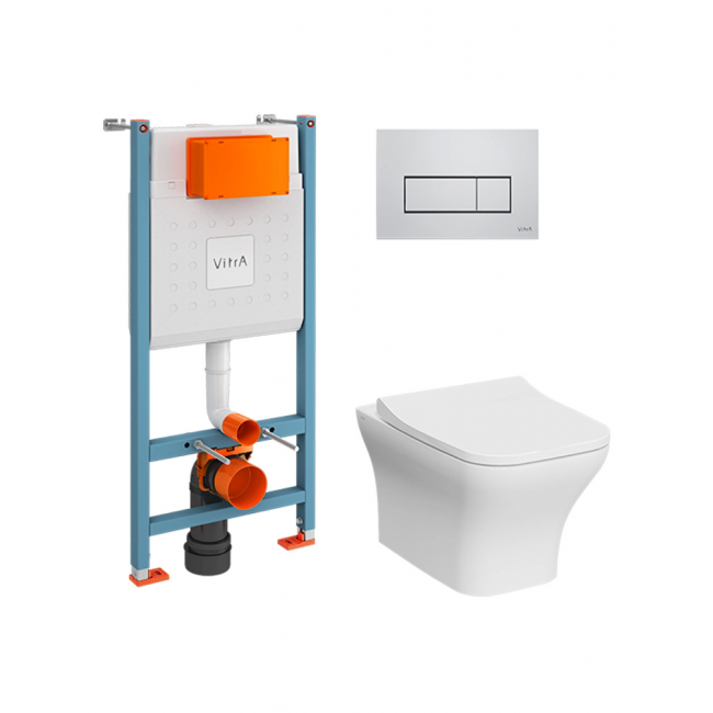 Комплект унитаз с инсталляцией, кнопкой и сиденьем микролифт VitrA Zentrum Square 9875B003-7201 безободковый купить с доставкой. 100% Оригинал. Гарантия!
