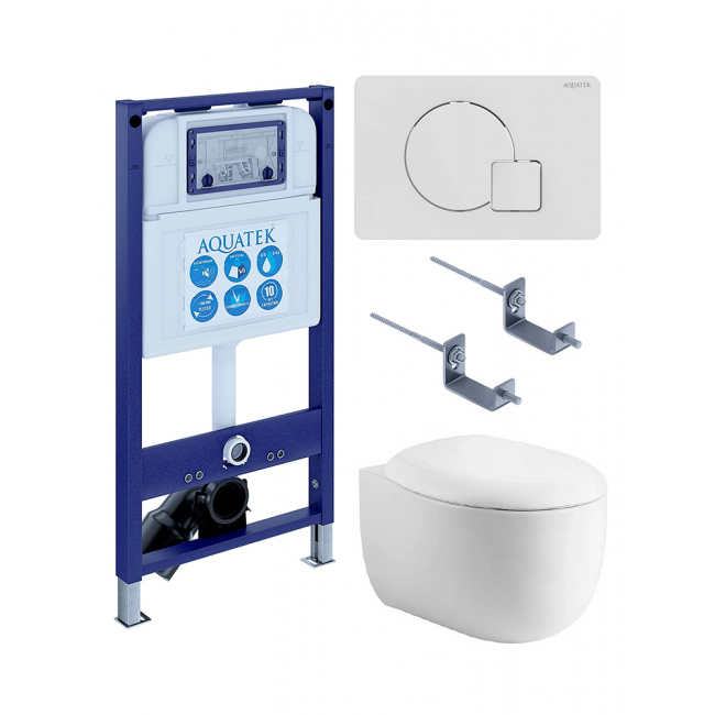 Комплект унитаз с инсталляцией, кнопкой и сиденьем SET AQUATEK АЛЬТАИР cm-066 4в1 безободковый купить с доставкой. 100% Оригинал. Гарантия!