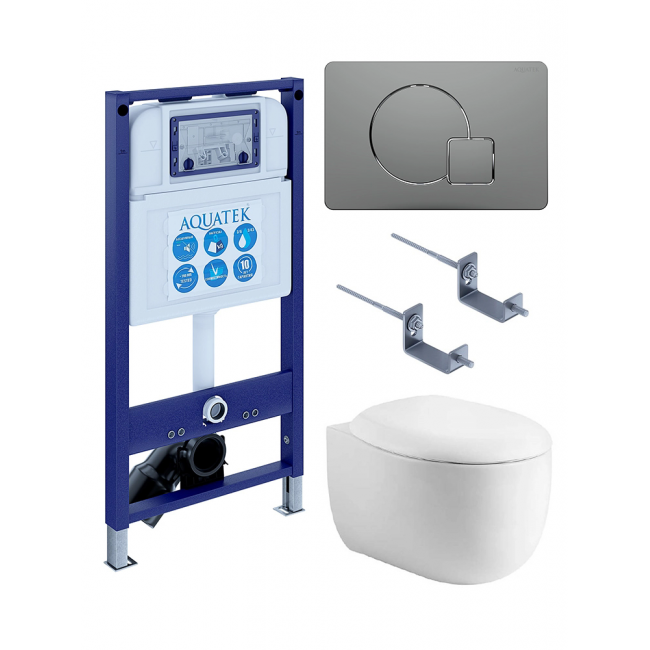Комплект унитаз с инсталляцией, кнопкой и сиденьем SET AQUATEK АЛЬТАИР cm-070 4в1 безободковый купить с доставкой. 100% Оригинал. Гарантия!